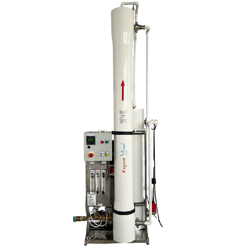 Sistemul furnizeaza apa demineralizata prin osmoza inversa. Acest lucru inseamna o reducere a conductivitatii apei de 95-99% (TDS) si rezultatul este apa demineralizata. Aceasta inseamna ca de la 100 ppm TDS dupa modulul de osmoza inversa vom ramane cu intre 5 si 1 ppm in functie de calitatea apei, ph si temperatura apei.